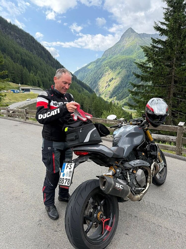 Es ist/war eine kleine 3-Tages Ausfahrt und hier ein paar Impressionen. 😎 Mit einem sehr guten Freund von Do. bis heute (Sa.) zur Großglockner Hochalpenpassstrasse = GG-HAPS gefahren. Es sind 6.Jahre vergangen, seit meiner letzten Fahrt auf der GG-HAPS. Es hat sich einiges verändert auf der GG-HAPS. 🤔 1. Geschwindigkeitsbegrenzung auf 70km/h (wegen Umweltschutz). 2. Meisten Touristenhotspots mit Geschwindigkeitsmessanlagen ausgestattet. 3. Außergewöhnlich viel Polizeipräsenz. 4. Weniger Fahrradfahrer 🚴♂️ (als noch vor 6.Jahren) All dies hat den Fahrspass nicht beeinträchtigt 😬. Aber von Beginn an….am Donnerstag die Mopeds gepackt , er seinen „Herzog“, ich den „CroFighter“ und Richtung GG-HAPS gestartet. Zuvor musste das selbst entworfene und gebastelte Gepäcktragesystem für den CroFighter optimiert/verstärkt werden - mehr dazu demnächst im Streetfighter-Fred. Das Kriega-Gepäcksystem, mit 20L-Haupttasche (Klamotten, Schuhe, Kulturbeutel), 10L-Techniktasche (Erste-Hilfe-Beutel, Reifenflickzeug mit Kartuschen, etwas Werkzeug und Regenklamotten) und Getränketasche. Das genialste Gepäcksystem, gut durchdacht (Militär halt 😁) unterschiedlich kombinierbar und absolut wasserdicht. Start im östlichsten Zipfel Oberbayerns durch Niederbayern nach Österreich 🇦🇹, am Mondsee und Wolfgangsee vorbei, über die Postalmstrasse (mautpflichtig) nach Zell am See und dann zum Hotel Wallackhaus an der GG-HAPS (https://regiojethotels.at/hotel-wallackhaus). Das Hotel war der Stützpunkt mit 2 Übernachtungen. Der Ausblick vom Hotel in die schöne Gebirgskettenwelt ist unbezahlbar. 🥰 Blick auf den Mondsee: Postalmstrasse: Ausblick vom Hotel: Freitag bei strahlendem Sonnenschein die GG-HAPS über die Südrampe zur Kaiser-Franz-Josefs-Höhe = KFJH gefahren. An der KFJH war ich überrascht wie sehr die Pasterze (das ewige Eis - die Gletscherzunge) am GG die letzten 6-Jahre zurückgegangen ist. Über die Gründe streiten sich die Gelehrten noch. 😎 Diese Eismassen, diese Gebirgsmassive zeigen mir immer wieder auf, wie klein und nichtig wir Menschen gegen diese Natur sind und es ist für mich immer wieder eine gedankliche Neukalibrierung des Daseins. 😊 Anfahrt zur KFJH - Rechts über meinem Helm der GG.: Die Pasterze (Gletscherzunge): Gedankenkino und Neukalibrierung des Daseins: Weiter über Heiligenblut und Lienz zum Staller Sattel. In Lienz einem riiiieeesen Harley-Corso mit ca. 200 Harley’s begegnet. Es war eine Charity-Fahrt unter dem Motto: „Laut für die Leisen und stark für die Schwachen“ indem Spenden für muskelkranke Kinder gesammelt wurde. Und die Harley’s waren laut, alter Verwalter 🤦🏻♂️mein CroFighter war ne Flüsterpfeife dagegen. 😬 Staller Sattel war gut besucht, da die Einbahnstrassenampel auf der österreichischen Seite (das Defreggental) auf „Warten“ stand. 😎 Wartezone am Staller Sattel, bald ist ein neues Schild fällig, um zu wissen wo man sich befindet 😂: Antholzer Tal (italienische Seite) mit dem Antholzer See: Defreggental (österreichische Seite) mit dem Obersee: Auf der Rückfahrt mal paar Straßen außerhalb der Hauptrouten gewählt und dann noch den Abstecher zur Edelweißspitze, einen Almdudler und Kaffee trinken. Wie immer sehr gut besucht bei Sonnenschein. Nebensträsschen Richtung Heiligenblut: Impressionen von der Edelweisspitze mit Blick auf die GG-HAPS Nordrampe: Heute wieder die Rückfahrt über die GG-HAPS Nordrampe über Mitersill zum Gerlospass und Achensee mit Zwischenstopp am Sylvensteinspeicher. Abfahrt GG-HAPS Nordrampe: Zwischenstopp Sylvensteinspeicher: In Summe waren es 1100km mit vielen Impressionen und super Wetter - alles hier zu posten würde wahrscheinlich eine Sperrung meines Accounts durch Ben zur Folge haben 😂😂😂. Die GG-HAPS Nordrampe und Südrampe mit all den Sehenswürdigkeiten entlang der Strecke ist immer eine Tour wert und kann ich sehr empfehlen. 👍🏽 Bollergrüsse Niko28 points