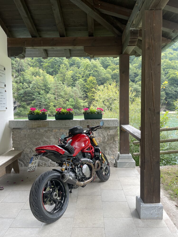 Hallo zusammen. Da ich ja erst seit kurzem Monsterfahrer bin und meine Monster nach der Auslieferung vermutlich nie mehr ihr Heimatland gesehen hat,habe ich mich vor zwei Wochen dazu entschieden,das zu ändern. Nachdem das Bike in meinem Camperbus verstaut war... ...und wir mangels freiem Campingplatz die erste Nacht zusammen im Bett verbringen müssten... ....ging es am zweiten Tag nach erfolgreicher Platzsuche endlich los. Eine Woche Südtirol Speciale stand auf dem Plan,allerdings konnte ich mangels gutem Wetter nicht alles fahren was ich wollte. Vom Rittenpass mit schönem Schlern-Panorama ...über Sella ..mehreren Mendelüberquerungen... ...und über den Molveno sowie Tennosee bis runter an den Gardasee war die erste Woche schonmal gut genutzt. In der zweiten Woche kam Frauchen mit ihrer CB1000R nach und ab da waren wir nochmal eine Woche direkt am Gardasee. Nach 10 Jahren Pause waren wir wieder das erste Mal am Monte Baldo. Diese Tour,die ab Mori über den gesamten Monte Baldo Kamm bis nach Torri del Benaco führt,war mit die schönste des ganzen Urlaubs. Mit der Monster bin ich super zufrieden bis jetzt. Genau das richtige Bike für solche Strecken. Immer genug Dampf ,allerdings kann man auch mal etwas entspannter fahren. Anders als die zappelige Superduke vorher,mit der man einfach IMMER zu schnell war. Nur schade dass mein SC Project nicht rechtzeitig vor der Urlaub kam. Somit war ich mit dem Oritopf unterwegs. War aber trotzdem toll. Gruß Mario32 points
