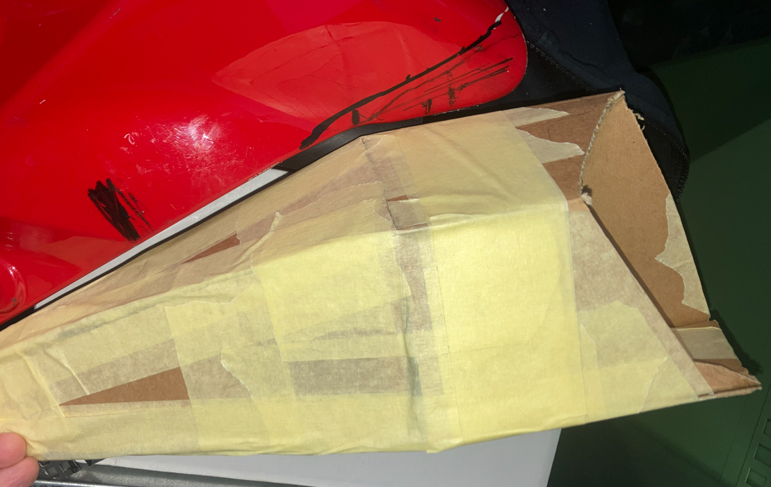 Die Kanonenrohroptik ist natürlich Mist.... Ich will das V-förmig und das es hinten am Knieschluß ganz flach ist... Neue Schablone für den Trägerboden... Kanten... Alten Trägerboden geglättet... Einmal schräg gekantet...