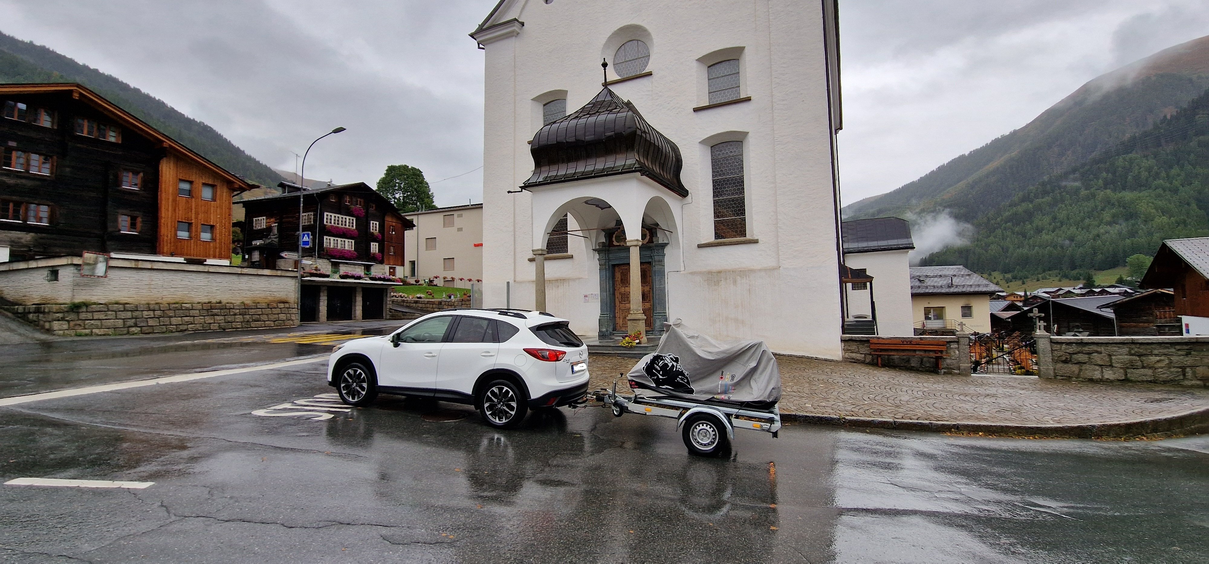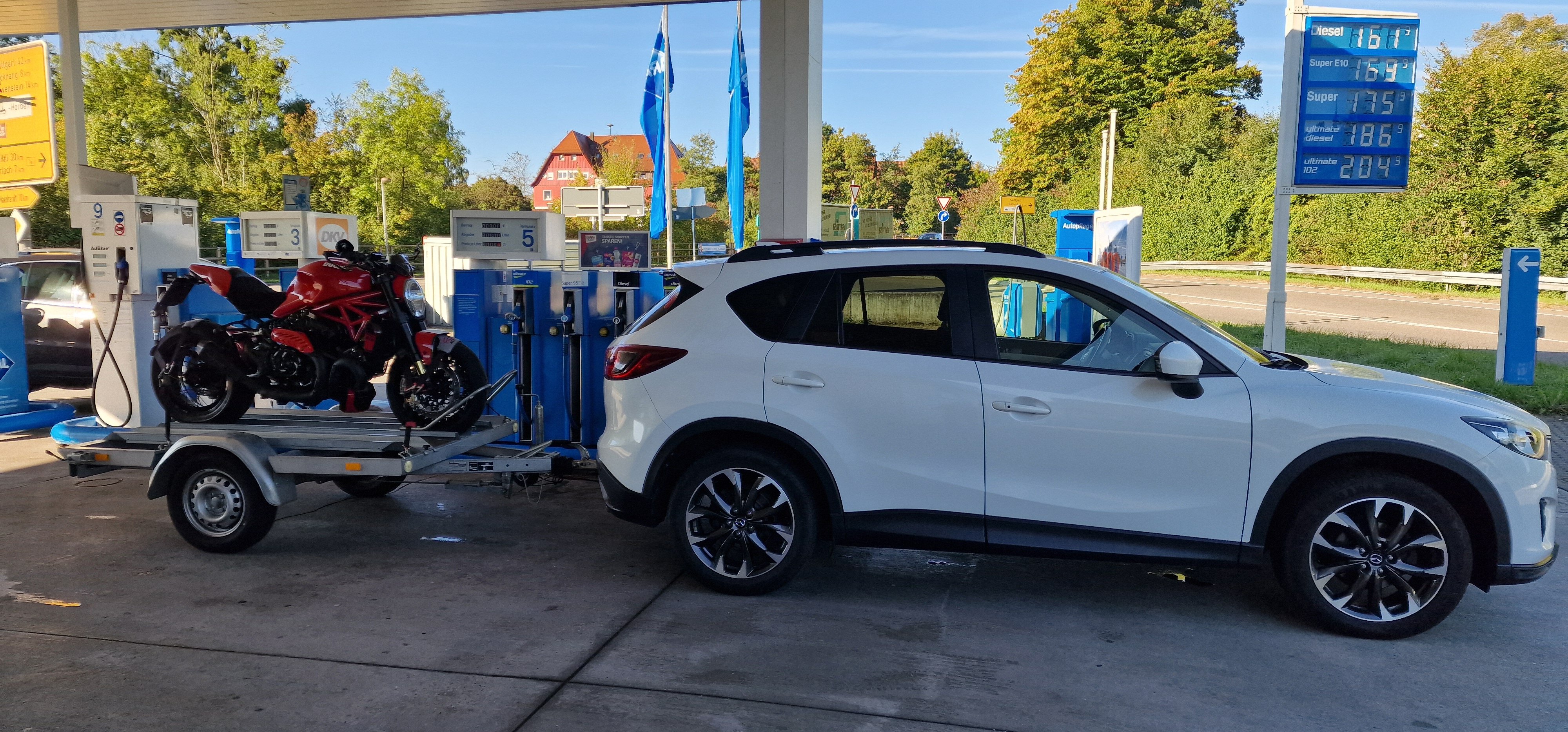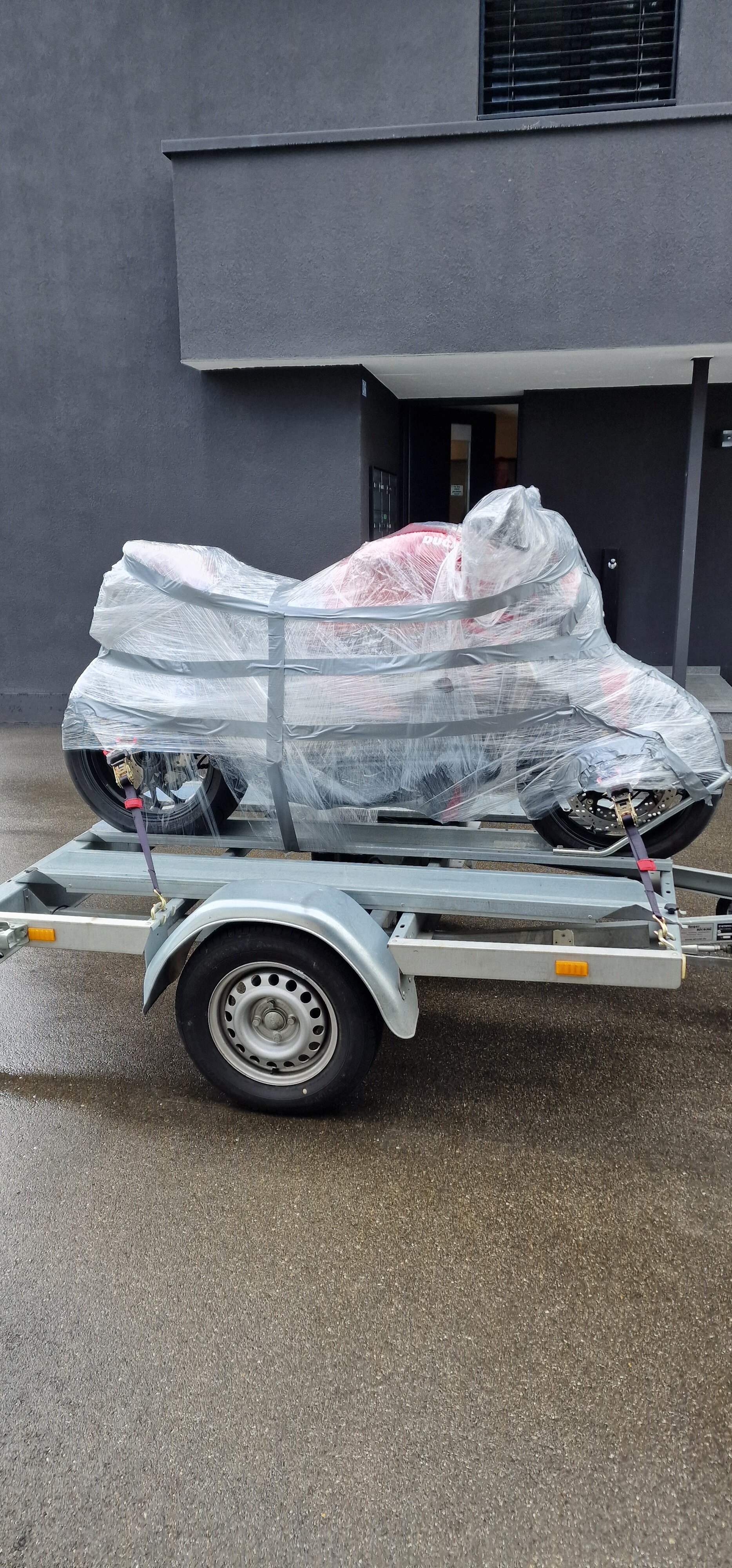 Motorrad mit einer Plane auf dem offenen Anhänger abgedeckt.......Flattert das nicht sehr stark ? Beschädigt nichts am Moto ?  Interessiert mich ernsthaft.