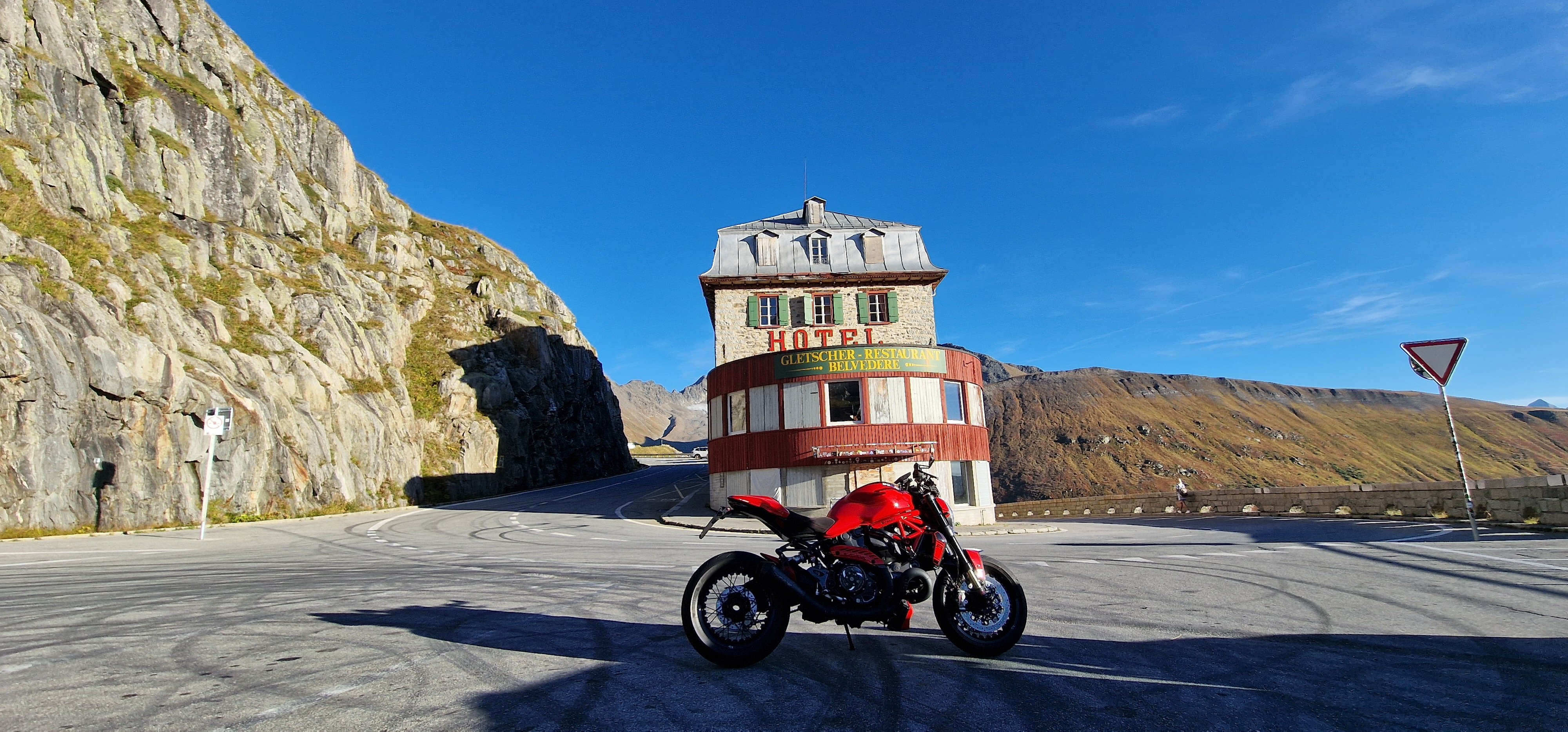 Letzten Donnerstag! Die Webcams im Kanton Wallis/Uri angeschaut😉. Das schöne Wetter genutzt und kurzfristig Zimmer gebucht! Monster raufgepackt. Anreise übern Grimselpass. Abreise Montag übern Nufenenpass bei strömenden Regen (bis Stuttgart) und die Schneeflocke im Amataturenbrett. Richtung Airolo danach durch den Gotthardtunnel.