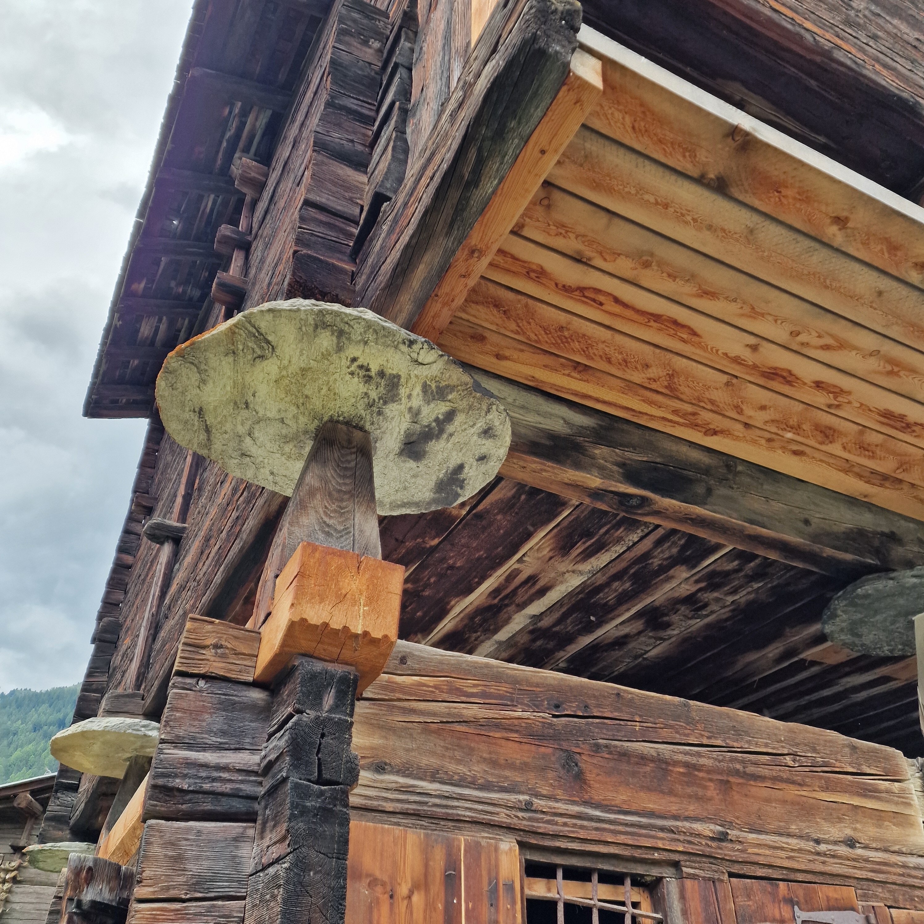 Als ehemaliger Löffelschnitzer😀hat mich das natürlich als erstes interessiert. Die Häuser einfach herrlich. Charakteristisch für das Goms sind die dreiteiligen Stadel. Unten wurde früher Kleinvieh gehalten z.B. Ziegen, dann kommt ein offener Zwischenteilt und darüber der meist mehrstöckige Oberbau, der als Lagerraum und Tenne diente. Er ruht auf großen runden Steinplatten, die Mäuse von den Lagerräumen fernhalten sollten.20250921_150511.thumb.jpg.82f818c0b01a1132eee4d03b0783b46d.jpg