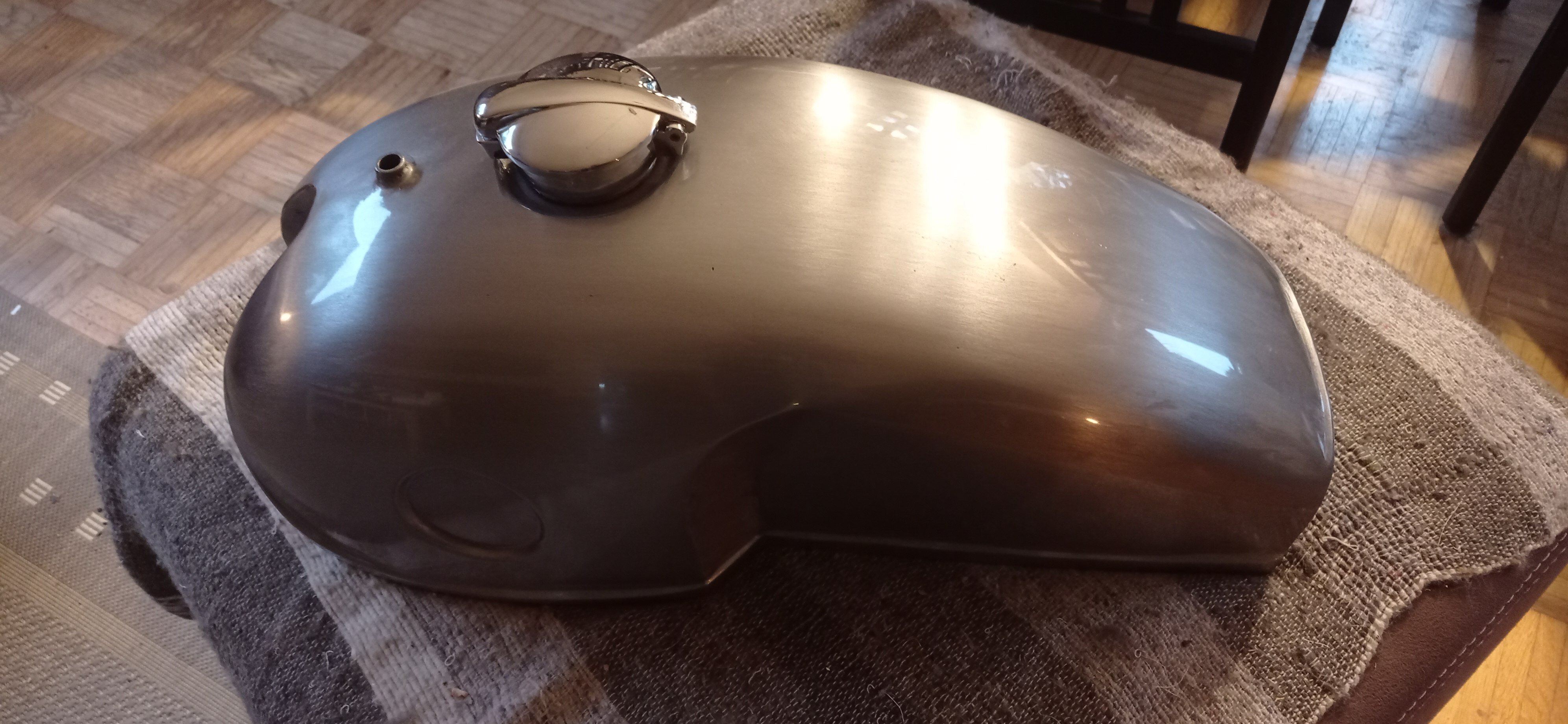 Tanktunnel erweitert wegen Rahmen, Innenversiegelt, Tank gebürstet 4 Schichten Klarlack