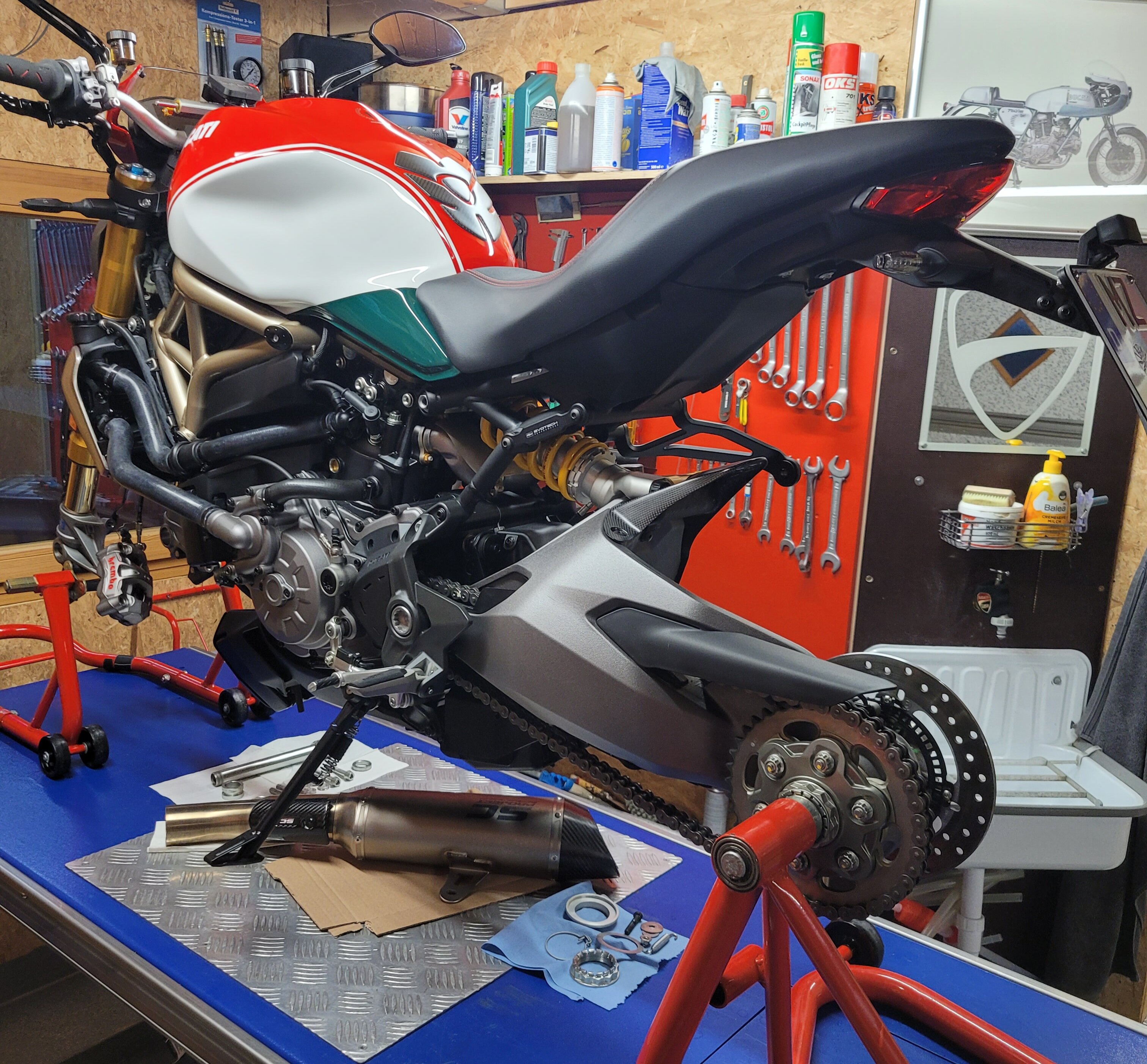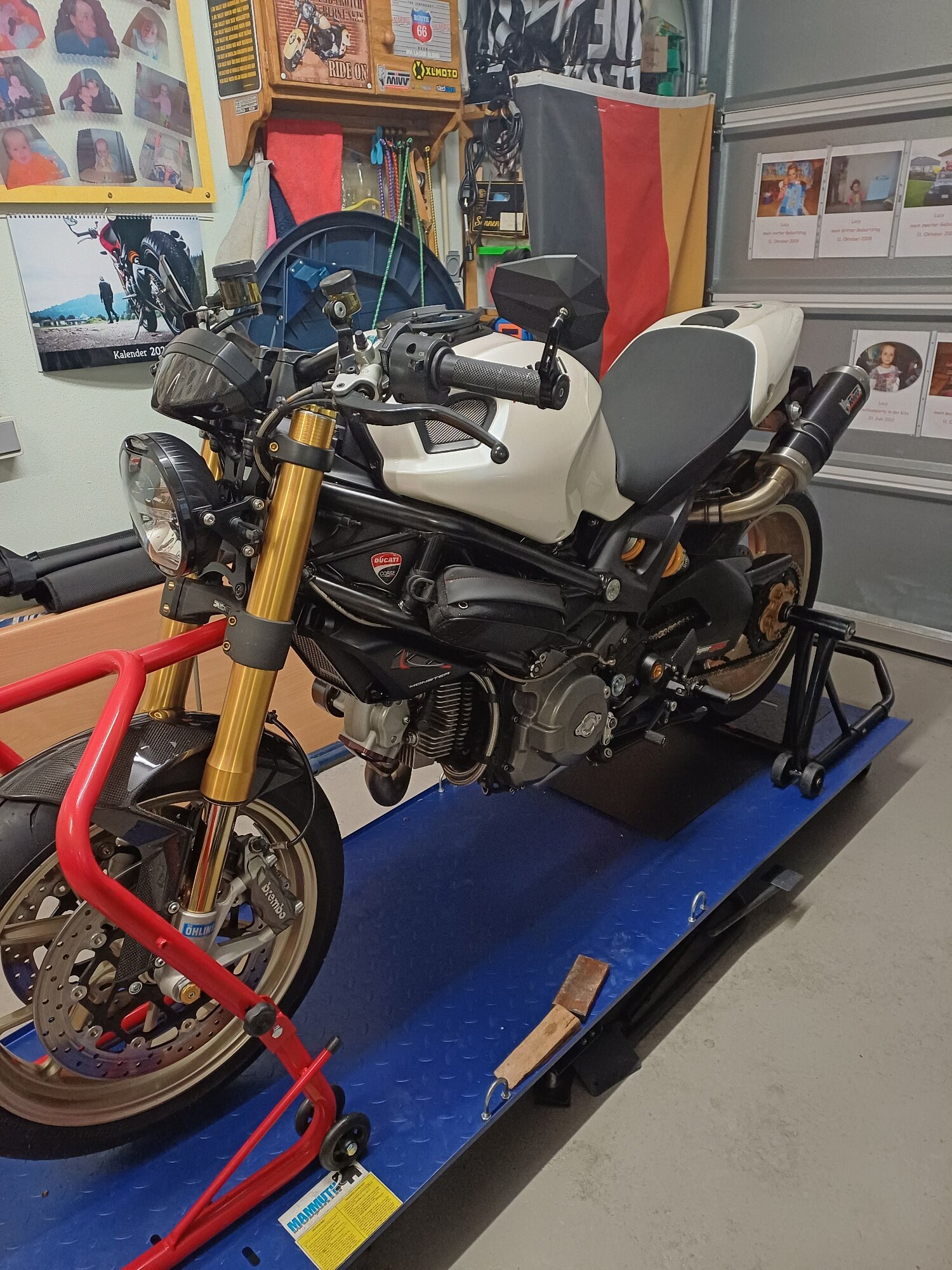 Ich mach bis auf´s Ventilspiel einstellen an der Desmodromik alles selbst, hab mir sogar mit ´nem sehr guten Freund ´ne Reifenmontier- und Wuchtmasschine gekauft.