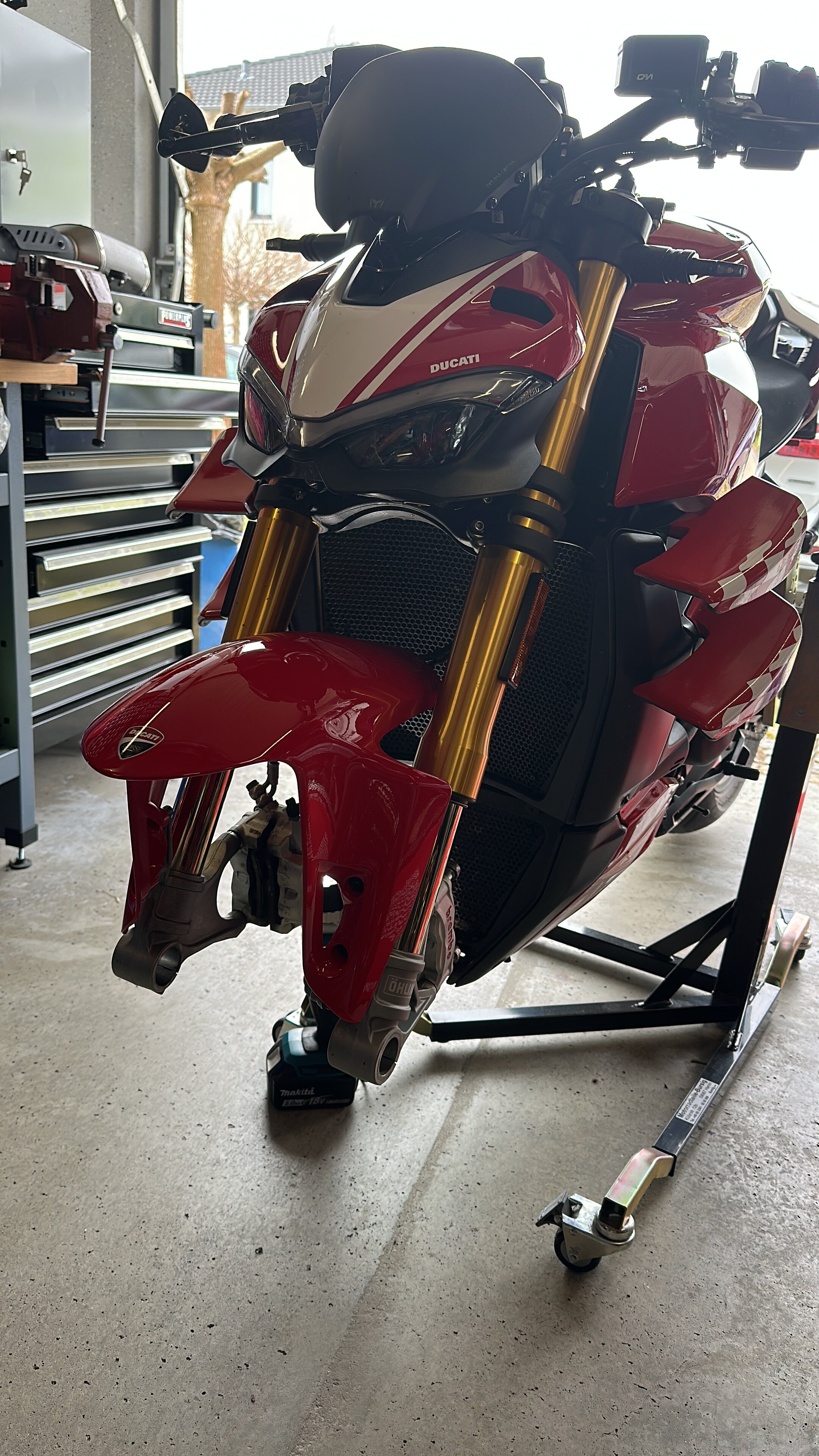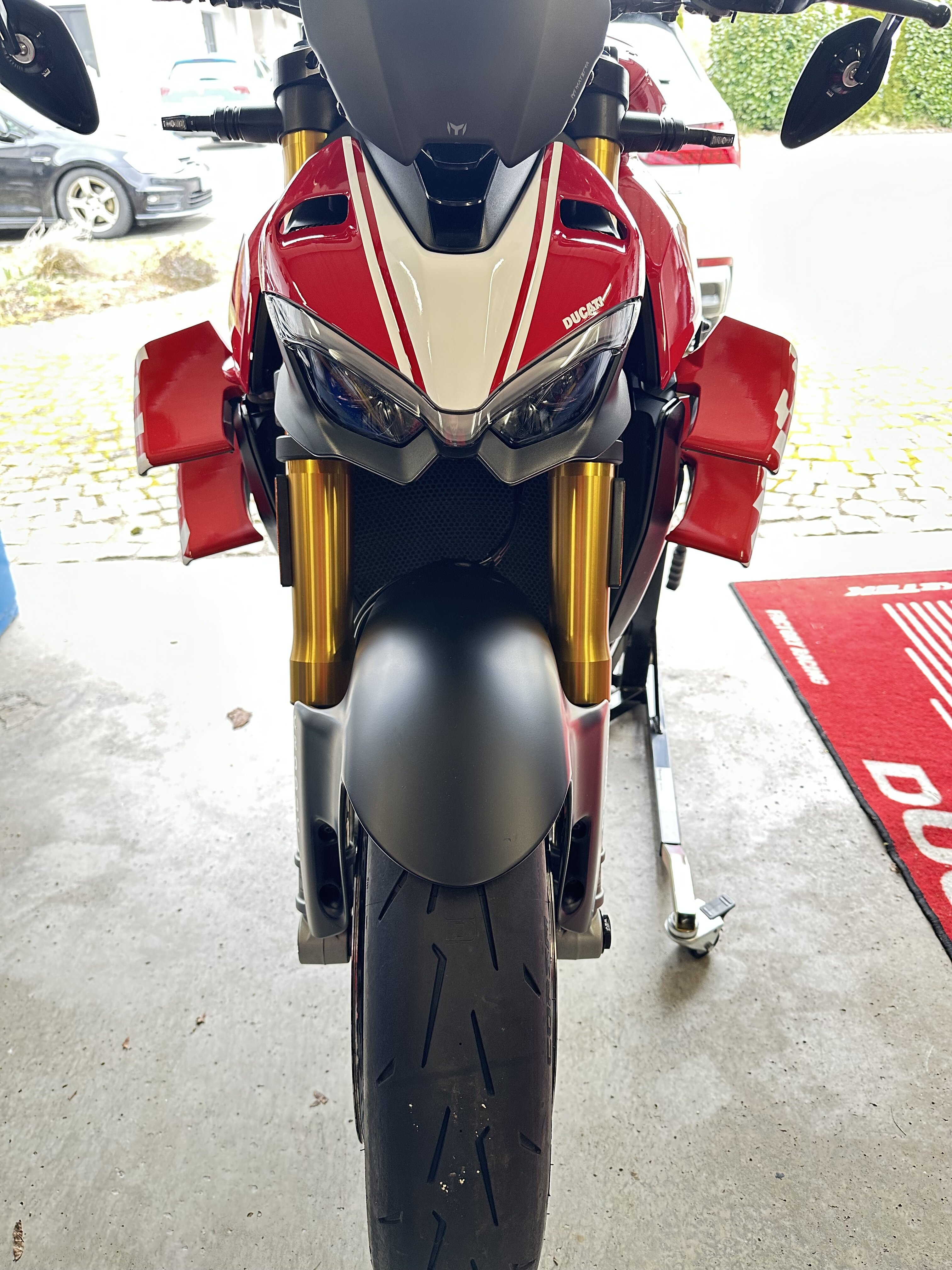 Bei meinem Freundlichen bin ich vor ein paar Wochen die SF V4S probegefahren, da war es um mich geschehen. Da ich mich im Nachgang in das Design der SP verguckt habe, musste es die unbedingt werden. Gestern Abend wurde sie geliefert. EZ 06/2023, 1. Hd, 2.900 km. Es kommen noch andere Spiegel dran und vermutlich der Desmoworld Kupplungsdeckel.