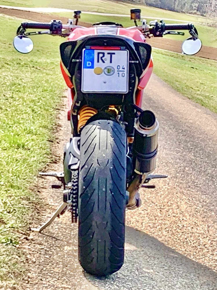 Eher durch Zufall den Roadsitalia Thunder Carbon entdeckt und zum guten Kurs direkt in Italien bestellt - recht zierlich, Gewicht mit Kat nur 1865g, alles mit E-Segen bei noch gutem Sound (und nicht zu laut), inkl. fast freiem Durchblick.