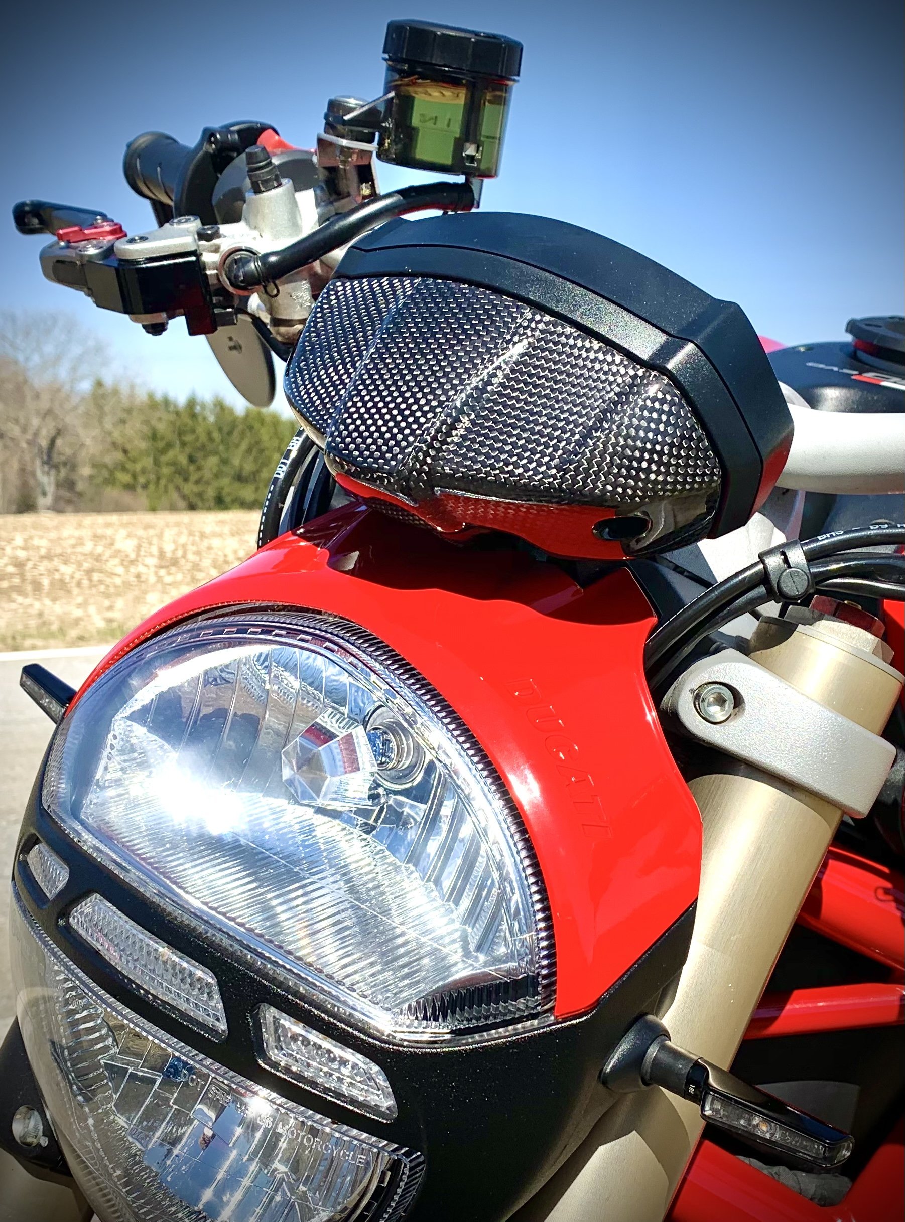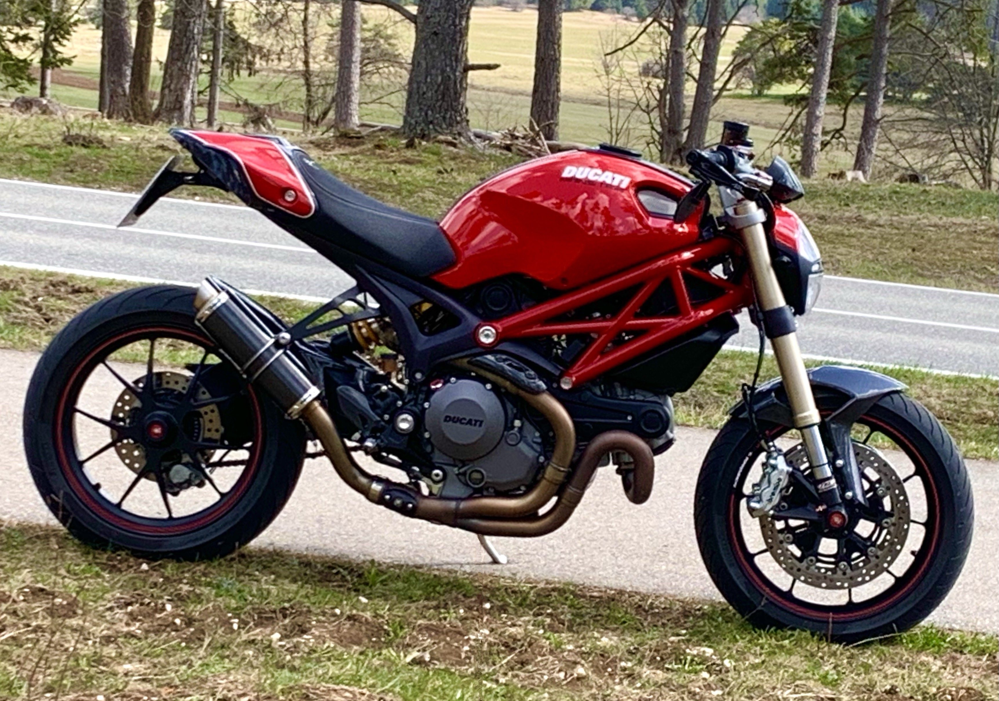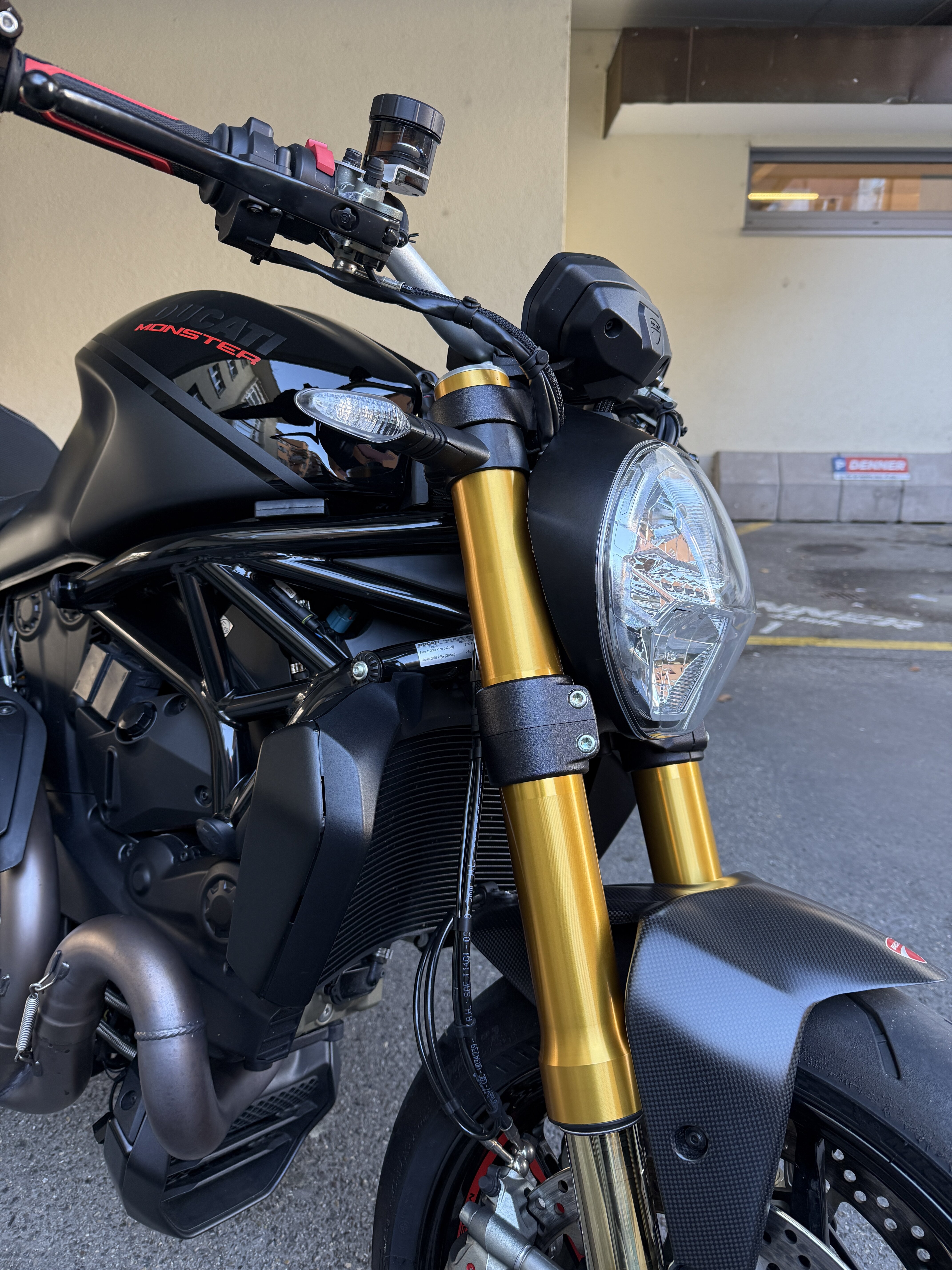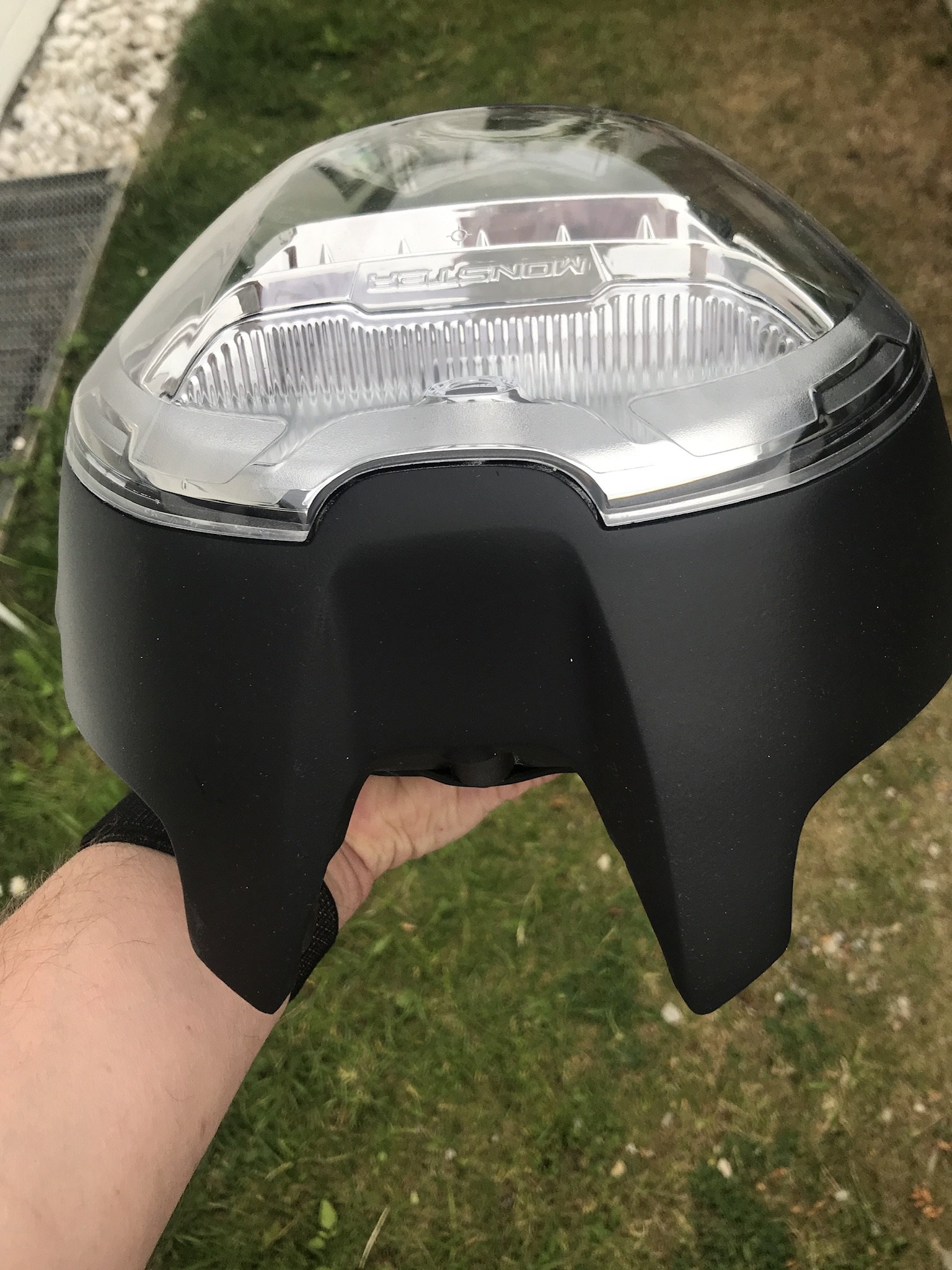 Hab zwar ne 821, aber vom Grundsatz isses ja ähnlich. Der Vorbesitzer hat das Lampengehäuse in schwarz seidenmatt pulvern lassen (worüber ich sehr froh bin👍). Einmal mit und einmal ohne Windschild - und ja: Gabel folieren (lassen) 🙈:
