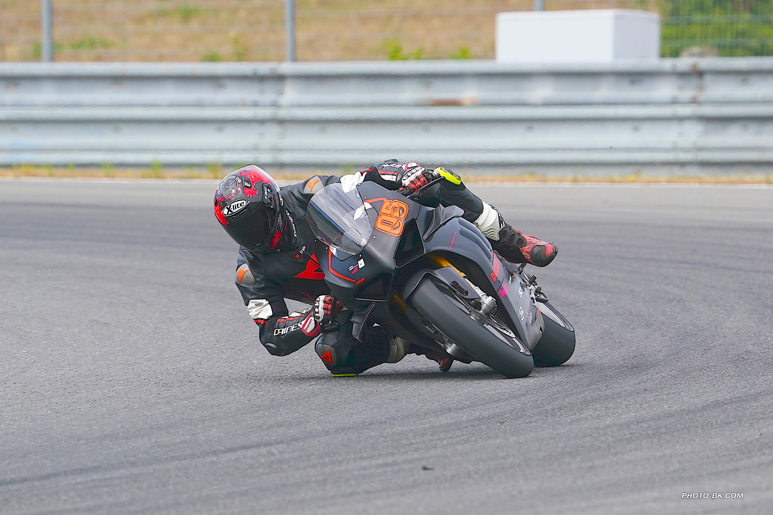 Versuche mehr Grenzbereich vorne zu erreichen, sehen objektiv riskant aus,  obwohl ich trotz ausgenutzter Kante auf dem Hinterradreifen noch genügend Sicherheit im Fahrwerk verspüre.