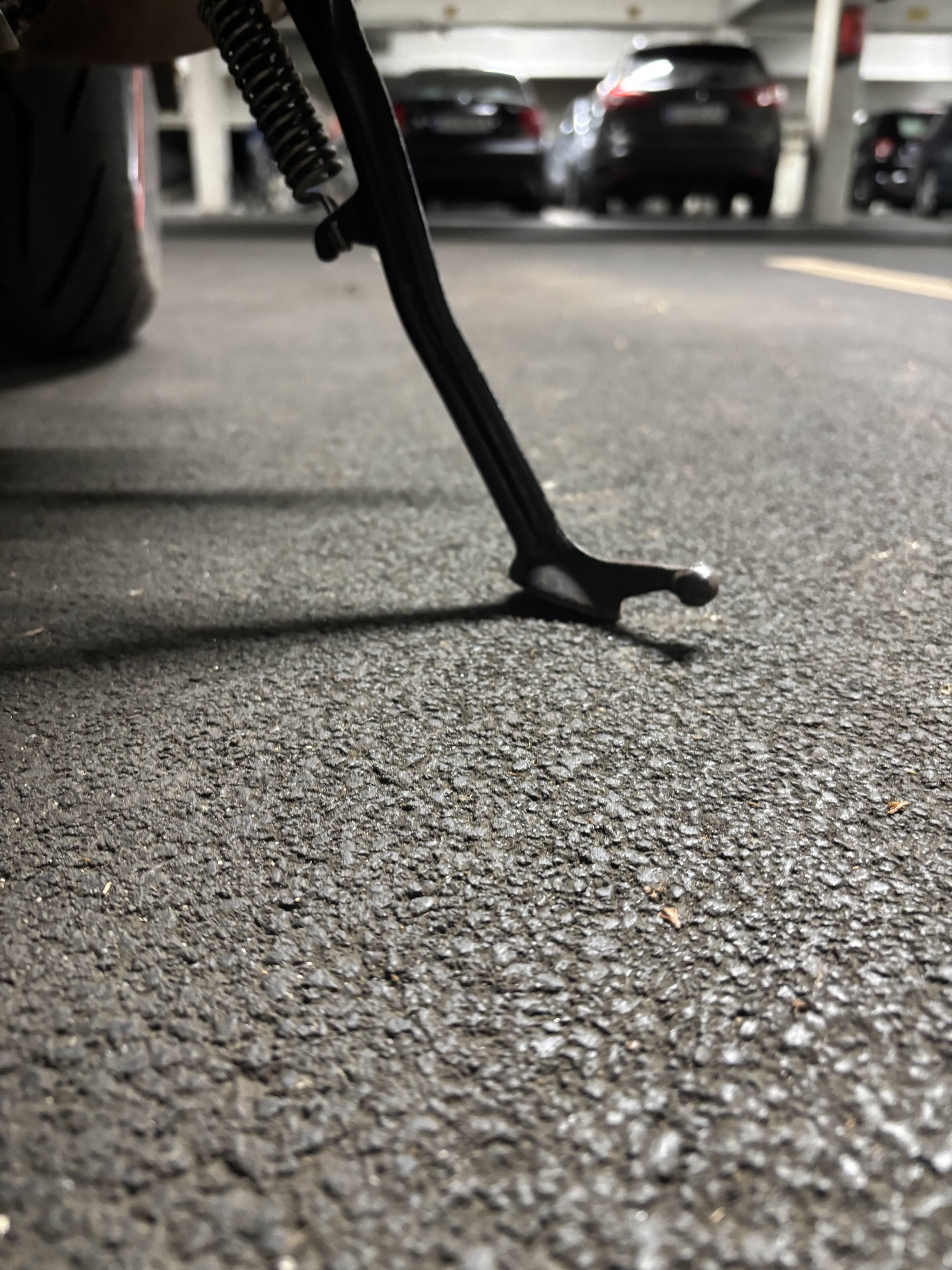 Hab auf meiner kurzen Abschlussrunde kurz neben einer Duke und einer MT07 geparkt und musste dann die Monster wo anders hinschieben da sie einfach nicht wirklich stabil stand.