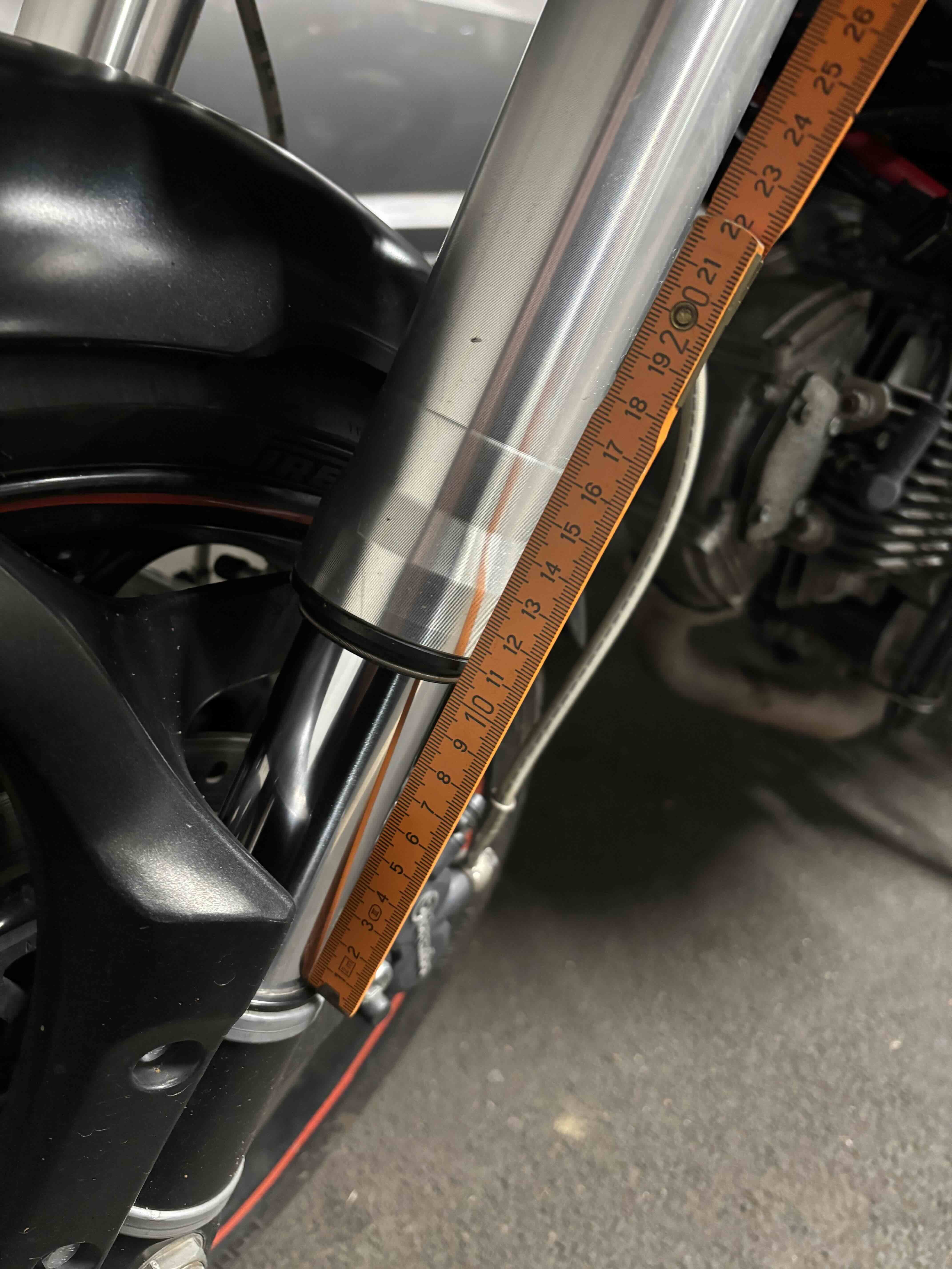 Foto? Ist das Motorrad „tiefergelegt“ (Gabel durchgesteckt, Federbein kürzer)?