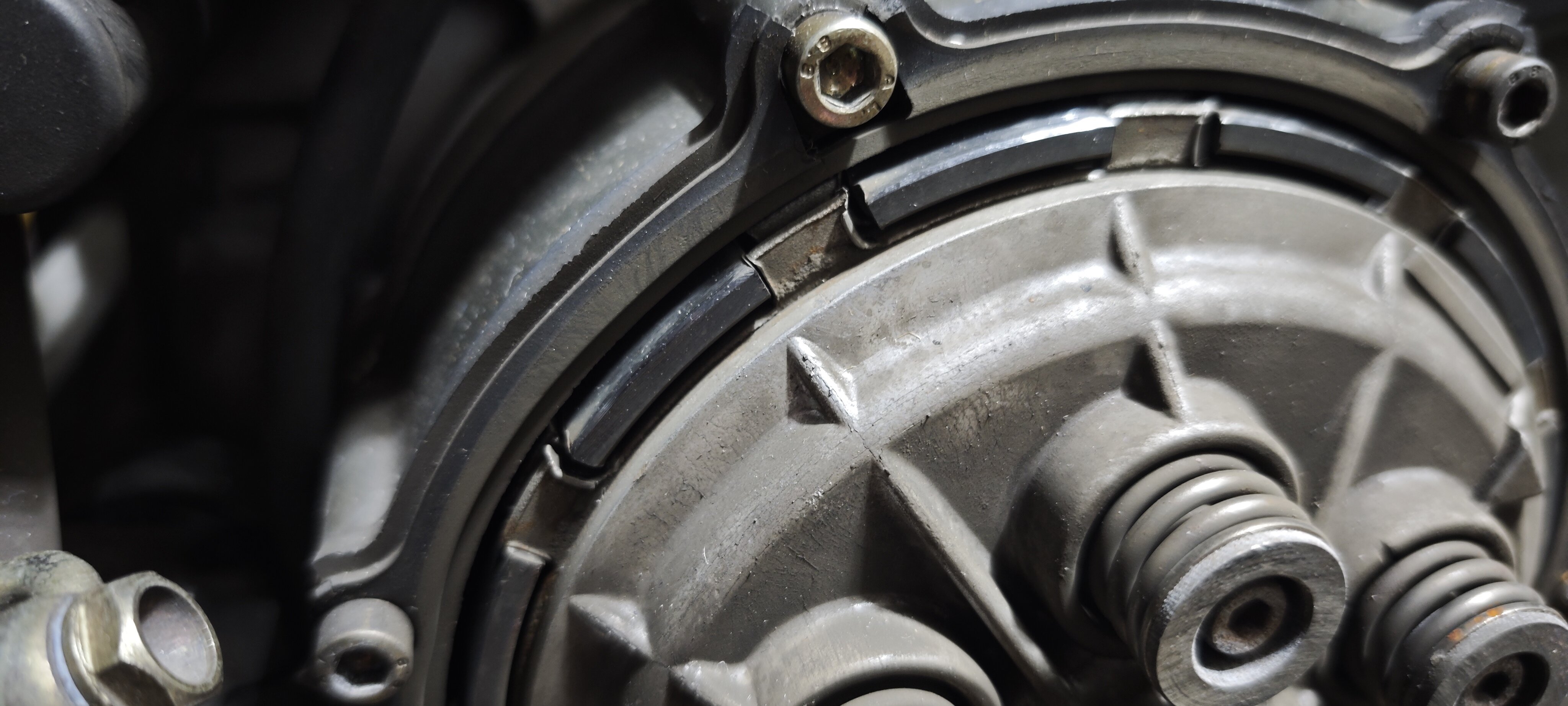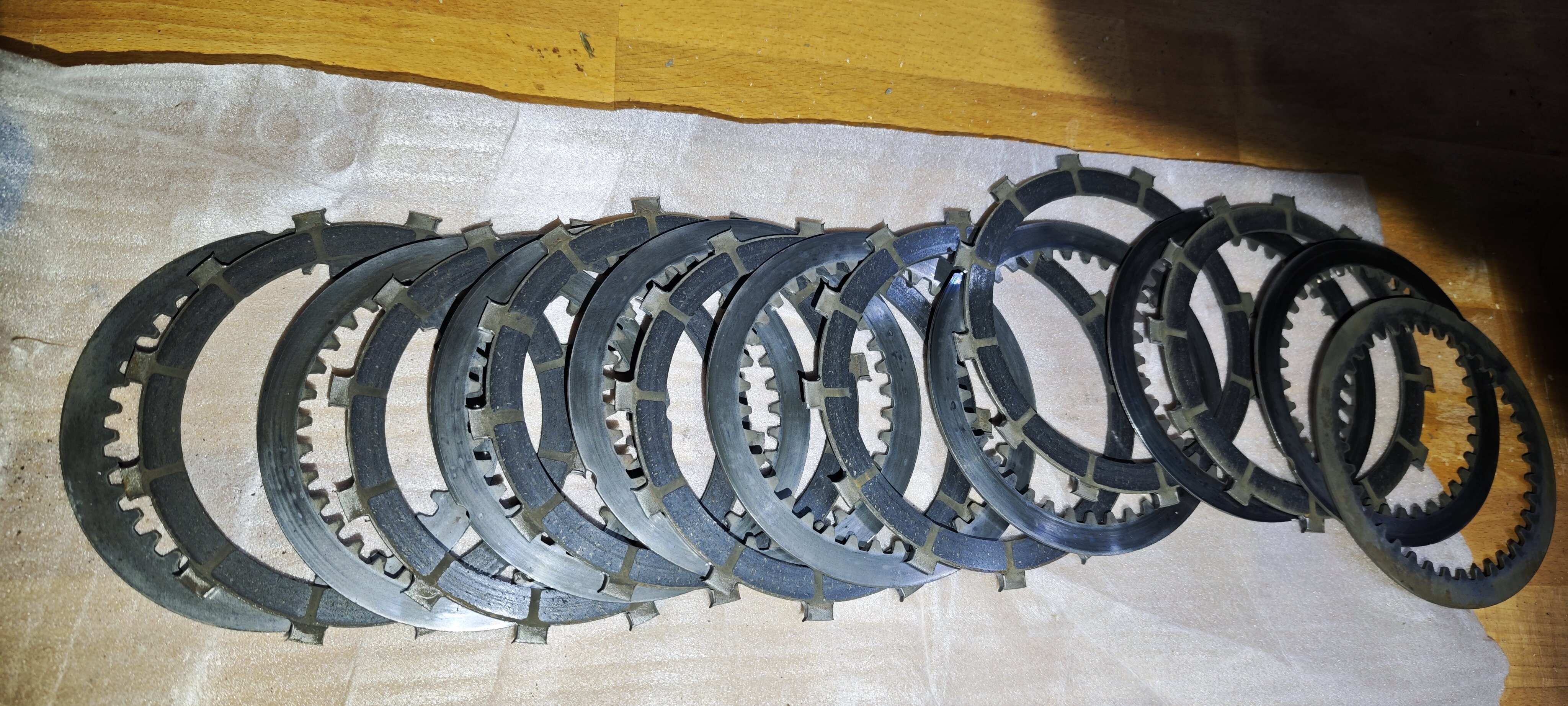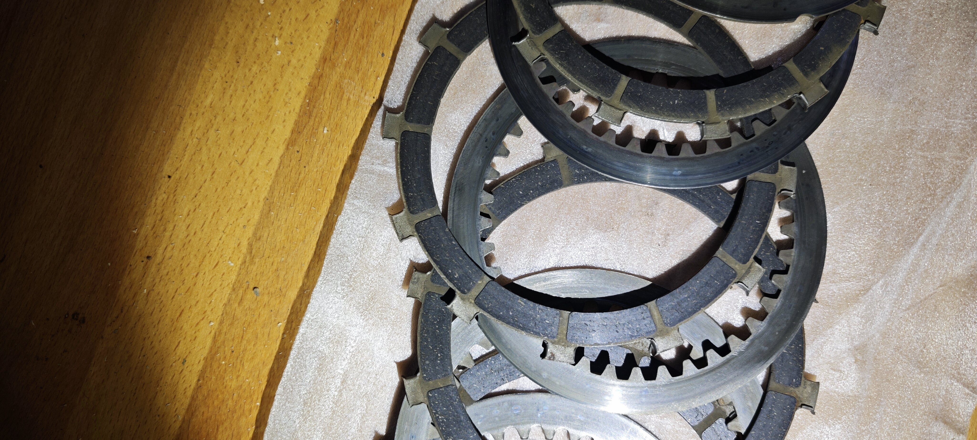 Bin gut vorangekommen, Airbox ist runter, Kupplung demontiert. Bei der Kupplung zeichnete sich ja schon ab das was Neues her muss.Die Reinbeläge sind eigentlich durch, ja und was soll ich sagen der Korb natürlich auch.