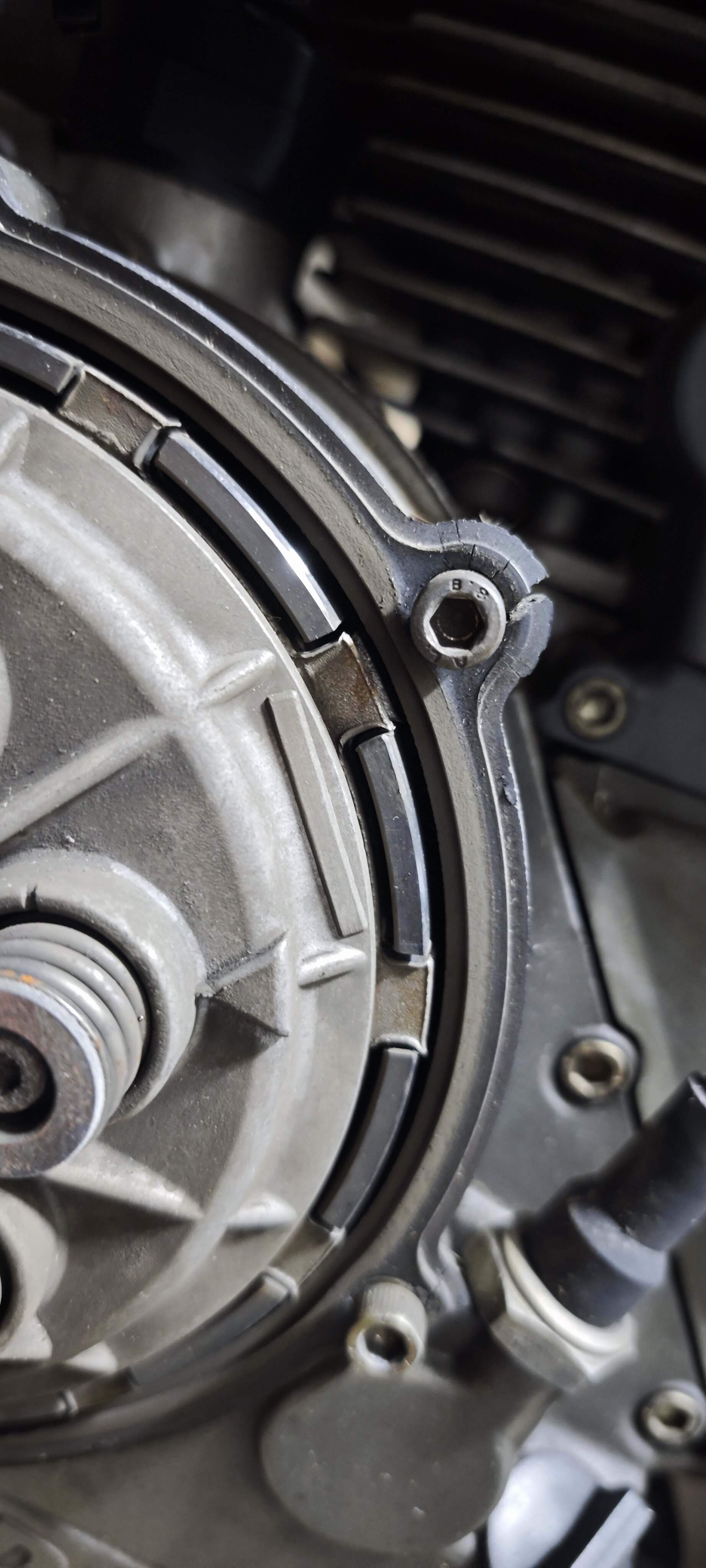 Erste größere Baustelle wird wohl die Kupplung werden. Der Kupplungskorb (siehe Bild) sieht ziemlich mitgenommen aus und muss definitiv raus. Also wird es eine komplett neue Kupplung geben.