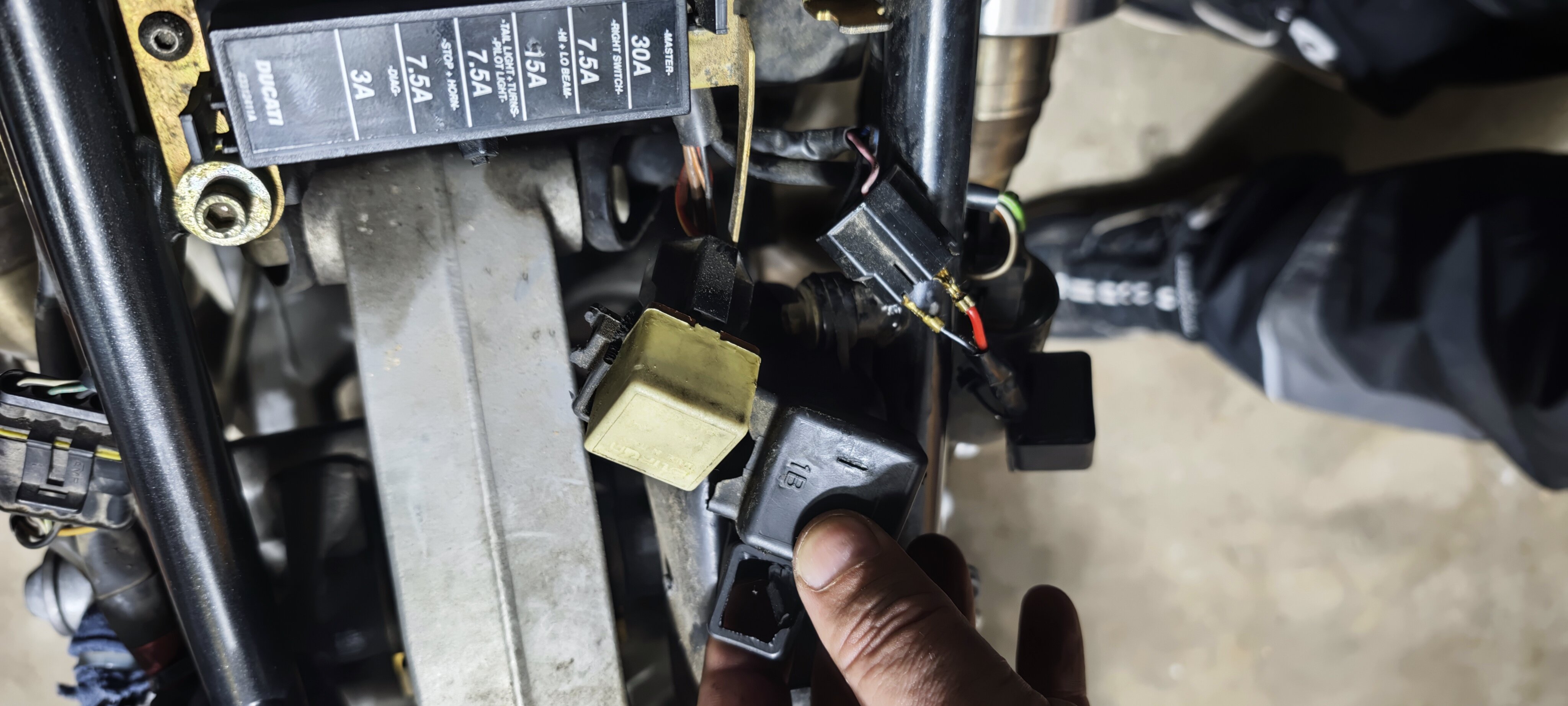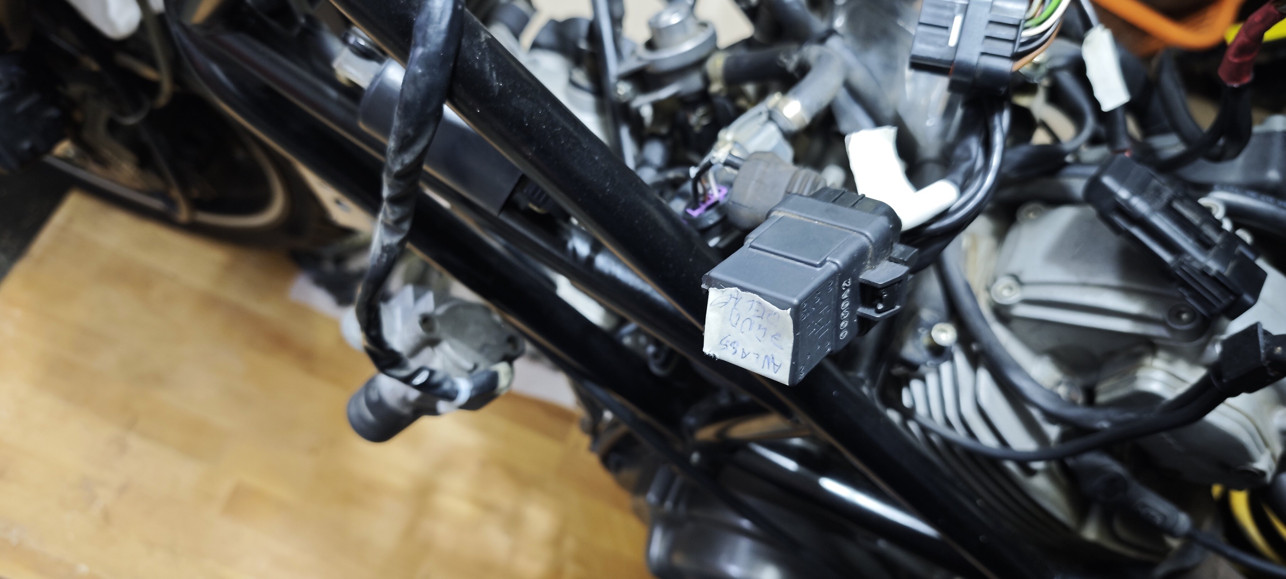 Desweiteren ist die Elektrik eigentlich völlig durch. Die Stecker lösen sich teilweise auf und es ist auch alles irgendwie nicht schön. Viele Kabelbinder am Rahmen, das mag ich ja überhaupt nicht. Teilweise wirklich seltsam und abenteuerlich verlegt. Ich hab auch einige Stecker gefunden, welche nicht belegt sind und wo ich mich frage wofür genau die sind. Auch die Relais (welche ja zum größten Teil rausfliegen) hatten sicher schon besser Zeiten.