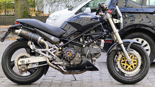 Verdammt... ich mag das Ding nicht wirklich leiden, habe mich aber instant wieder in diesen unvollkommenen Motor verliebt,... ich hatte ende der 90er eine Bimota DB2 und wollte wieder einen L-Twin haben. Da mir das gebückte nicht mehr liegt habe ich überlegt wo der Motor in einer ergonomisch akzeptabler Umgebung verbaut wurde und so wurde eine M900S angeschafft und ein bisschen umgebaut.