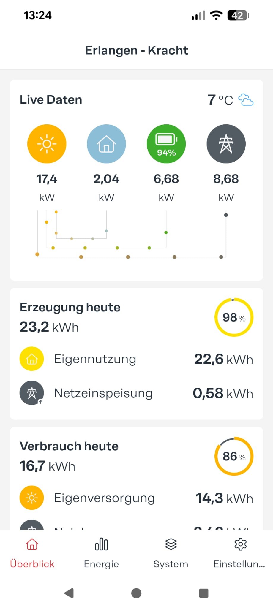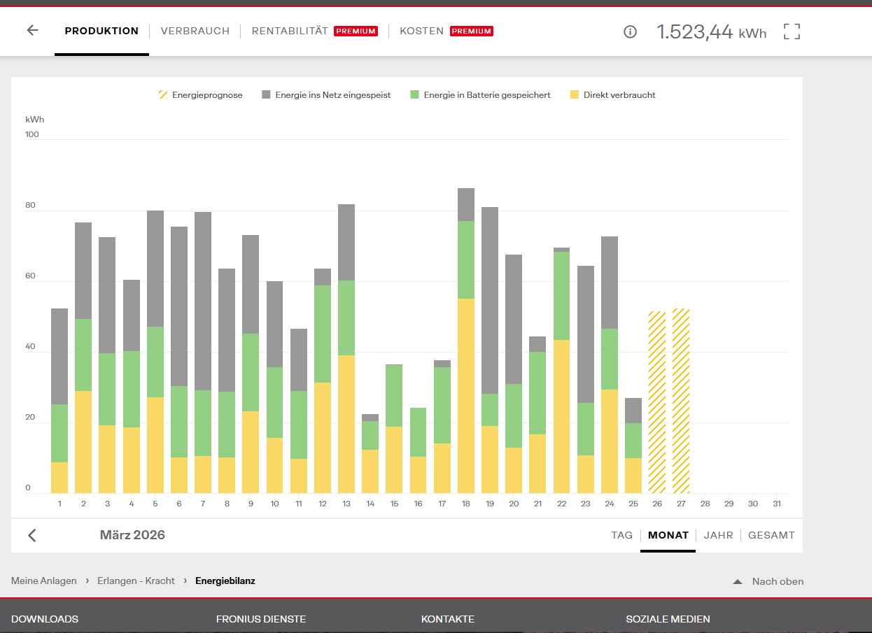 bis dato sind 294 kWh erzeugt. Habe leider nicht mehr Platz auf dem Dach.